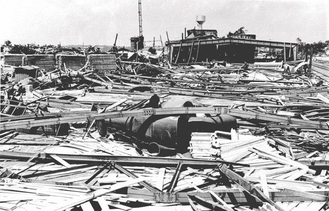 Over 50 state troopers were dispatched to handle the mass of traffic that poured into the area. At least three Guard units were standing guard at the various businesses to prevent looting. Heavy damage to N.D. Cass Toy Company and Olon Belcher Lumber Company, both having recently completed building programs. The new sections of both businesses were destroyed. No financial estimates on loss have been made.